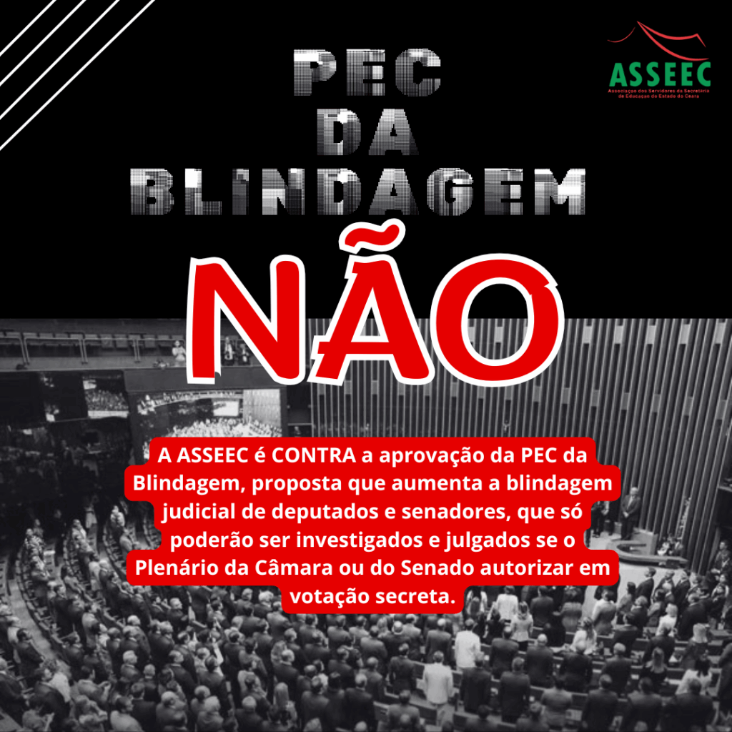 Compreendendo que a PEC da Blindagem fere o mecanismo constitucional FREIOS e CONTRAPESOS, do inglês “checks and balances, que divide o poder entre os três ramos do governo — Executivo, Legislativo e Judiciário — para que eles controlem-se mutuamente, impedindo abusos e protegendo as liberdades individuais, a ASSEEC é CONTRÁRIA A PEC DA BLINDAGEM.