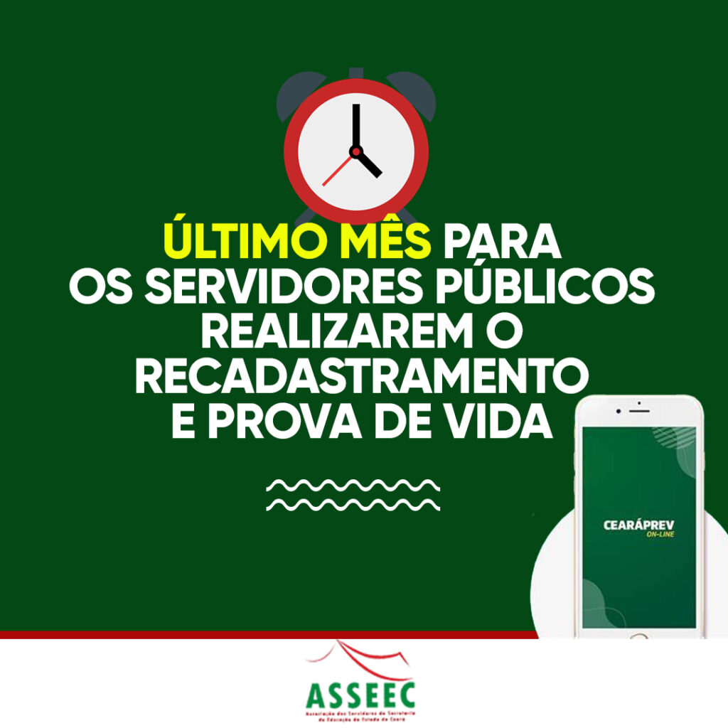 O mês de agosto é o prazo final para realizar o recadastramento e prova de vida. Não deixe para última hora, baixe o aplicativo Cearaprev On-line e faça o seu processo ainda hoje! Nosso app está disponível nas lojas Google App e Play Store.